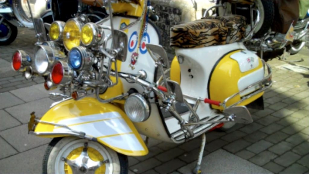 This revival partly inspired by the 1979 film Quadrophenia and by mod-influenced bands such as The Jam, Secret Affair, Purple Hearts and The Chords, who drew on the energy of New Wave Music. Back in Norwich and outside The Dog House Bar’ in St George’s Street, elaborate, polished and glittering scooters shone in the sunlight as they were admired by people of the current era and prepared for a successful grouping of scooter talk. YNUKtv was there and deeply impressed with the Lambrettas, Vespas and fashion