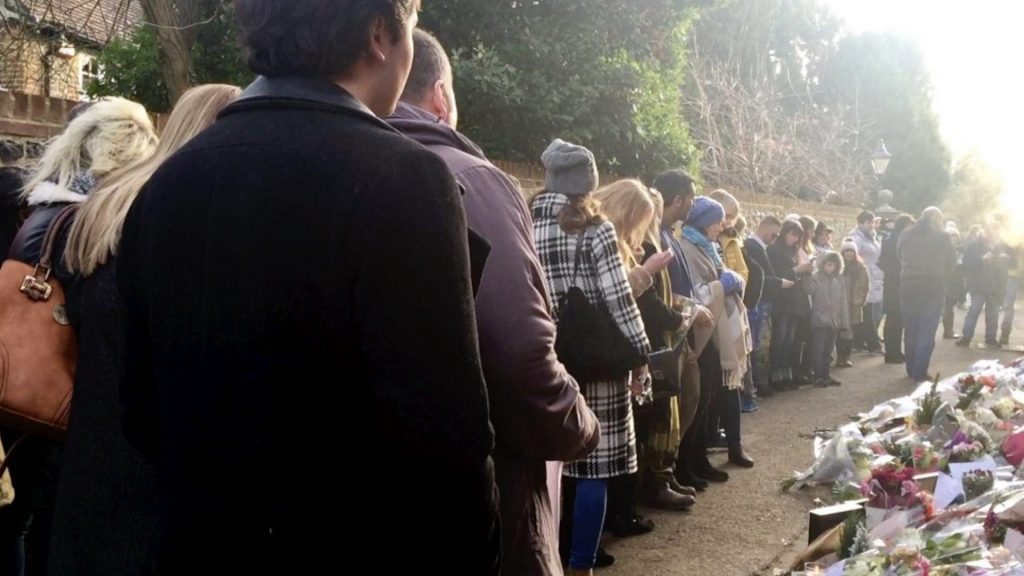 Large crowd of fans gathered outside George Michael’s home, in Goring, to pay tribute to their amazing idol. Many of them were emotional, in tears and couldn’t believe the pop superstar had died Christmas day 2016.