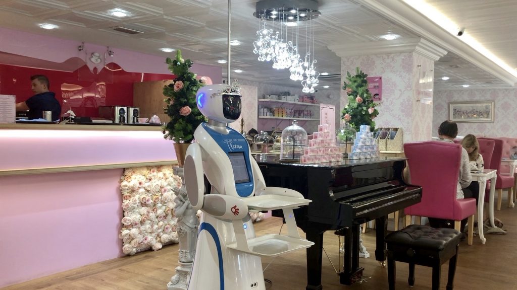 Would you like to be served by a robot? Have you visited the tea rooms in Cobham? Should they be taken on by other restaurants?