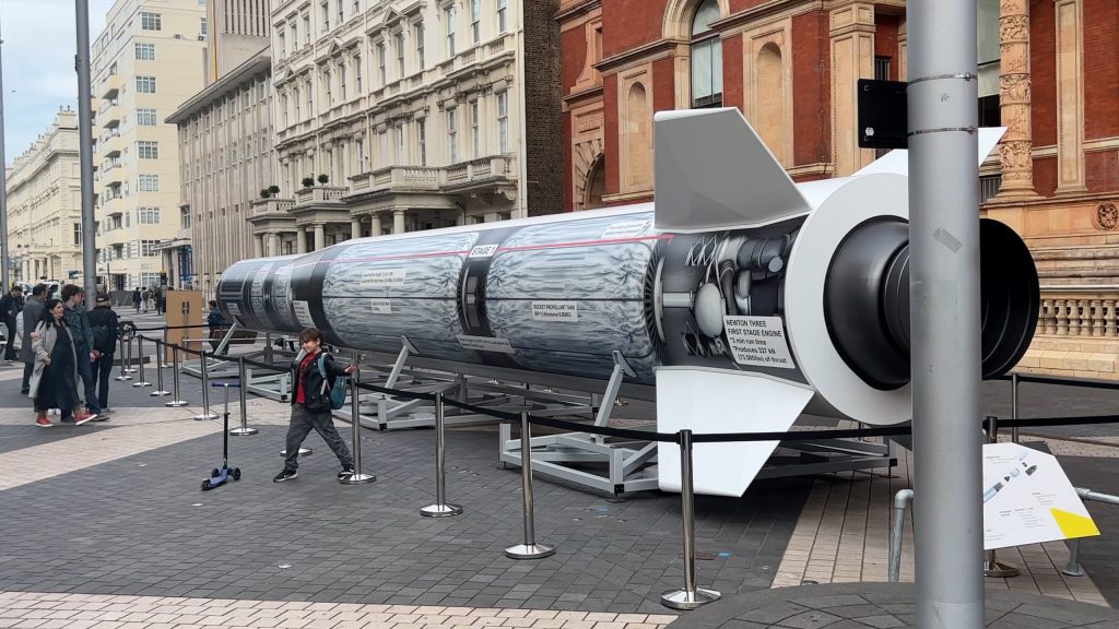 The life-size replica rocket went on display outside the Science Museum in London 15-16 October. A real rocket will launch from UK soil later this year. it did on January 9 but failed to complete its mission. Another attempt planned for later in 2023.