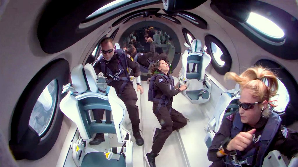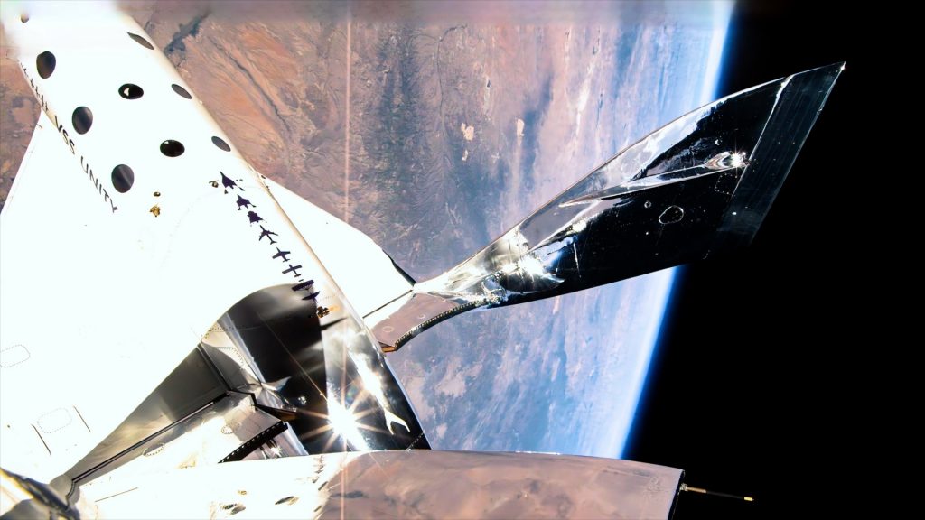 The Unity vehicle, with two pilots and four passengers aboard, climbed high over the New Mexico desert to the edge of space – before gliding back down.