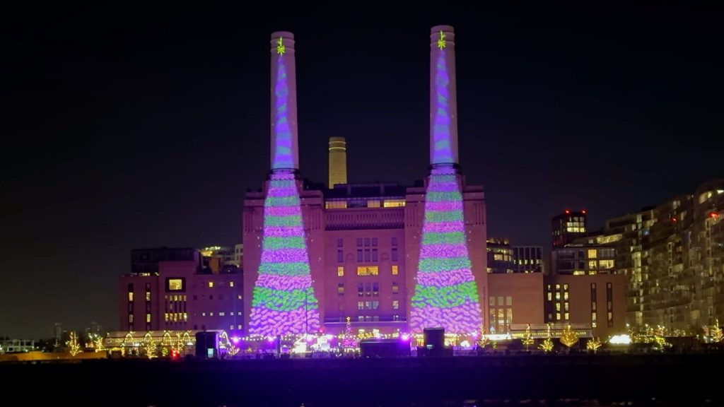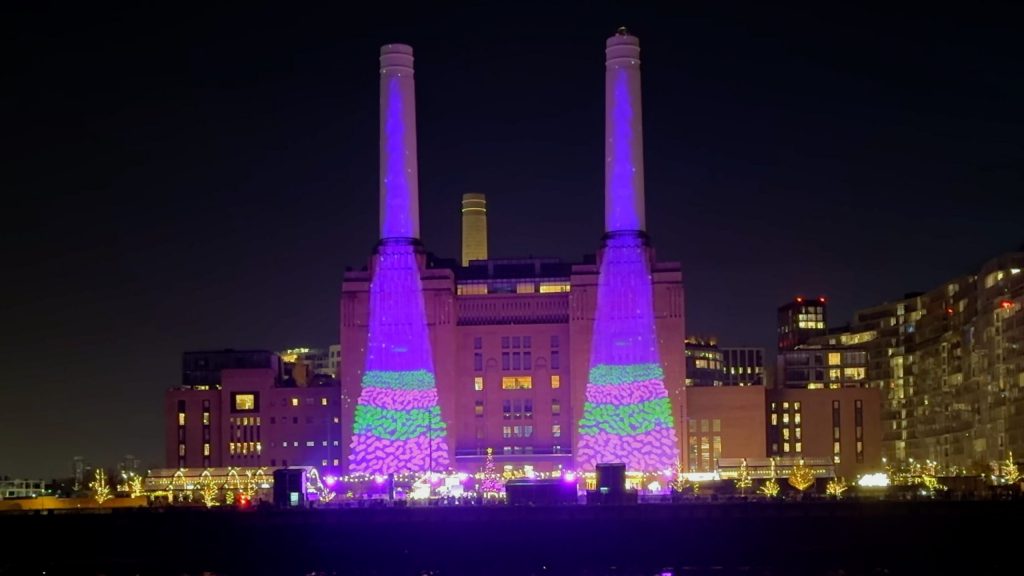 The David Hockney designed Bigger Christmas Trees is spectacular https://t.co/zHCYIM2c5y worth a trip action starts a 5pm each day #biggerchristmastrees #Apple #davidhockney #ynuktv @BatterseaPwrStn pic.twitter.com/b78LJqH09f