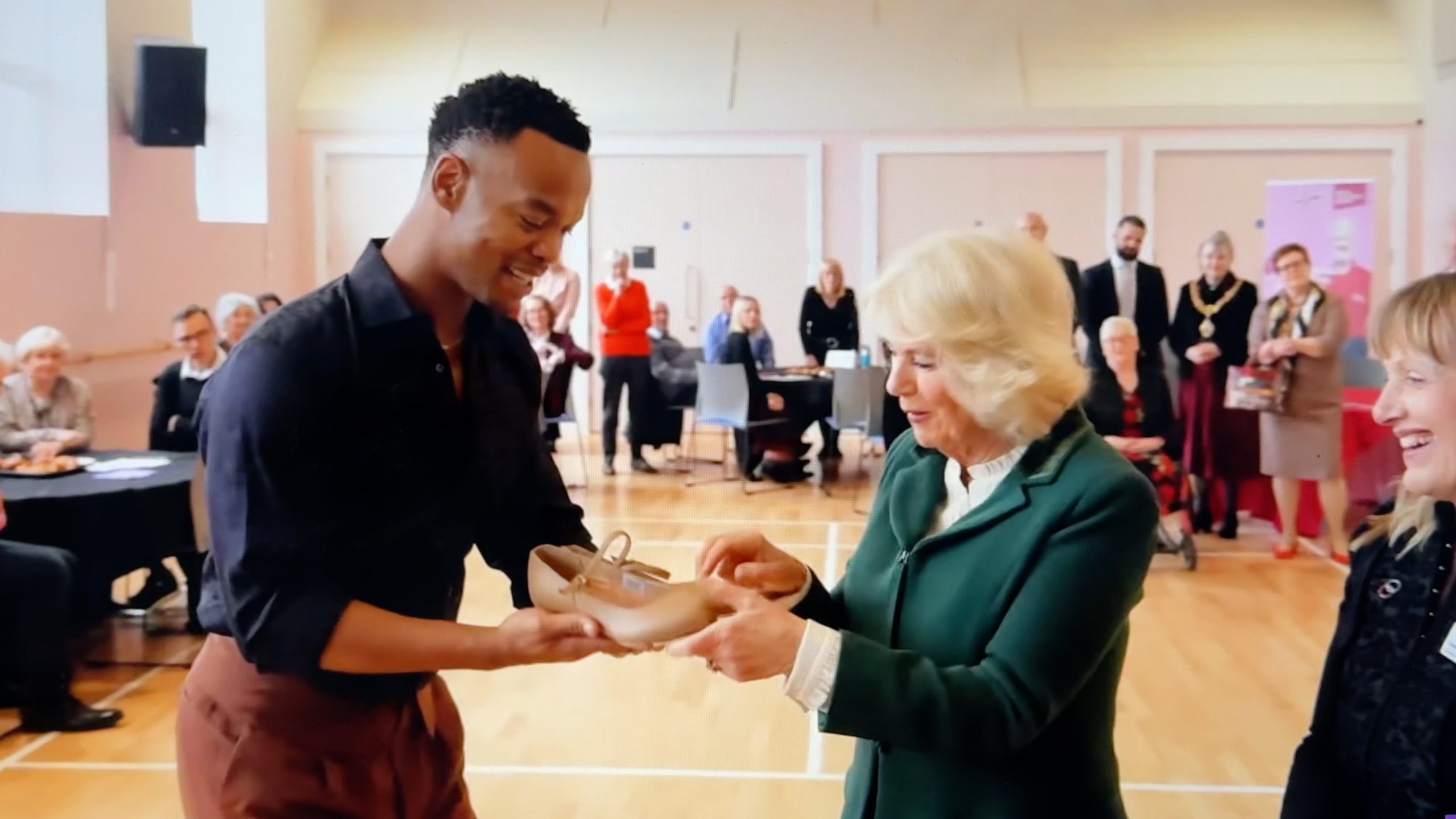 While visiting a #Community centre in #Cambridge #QueenCamilla told Strictly star #JohannesRadebe that she would love to tap-dance view ? https://t.co/hPaPlCLCS6 he gave her a lovely pair of shoes #HappyFriday #ynuktv pic.twitter.com/r12lIDVmX1
