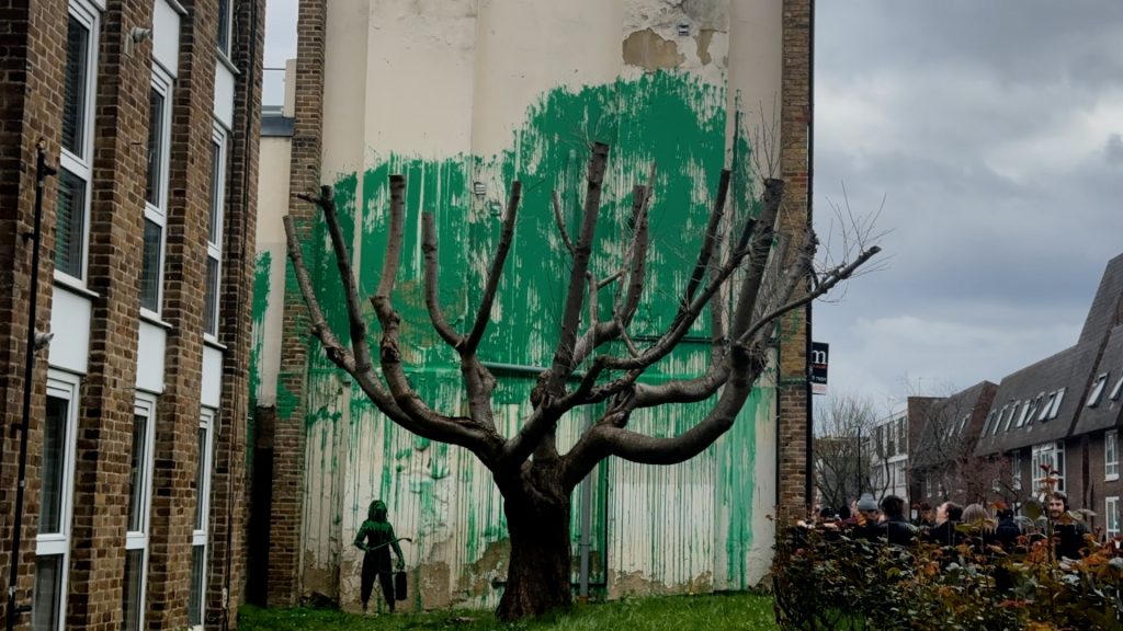 Banksy adorns bare tree with green leaves – to the joy of locals