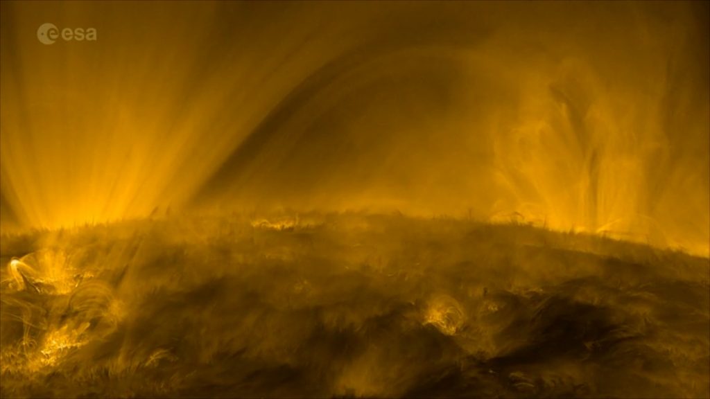 This otherworldly, ever-changing landscape what the Sun looks like up close. ESA’s Solar Orbiter filmed the transition from the Sun’s lower atmosphere to the much hotter outer corona.