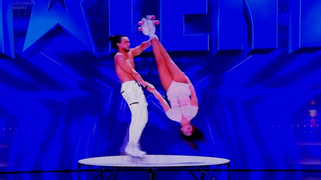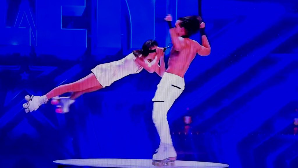 Couple Vlada and Yevhenii, AKA Duo Stardust, won over the Britain’s Got Talent Judges with their exceptional aerial roller skating display, bagging them Simon’s second Golden Buzzer of the series.