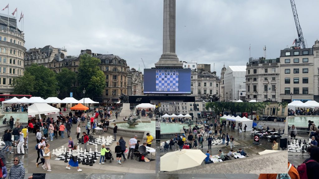Trafalgar Square fills with Chessboards – watch enthusiastic players