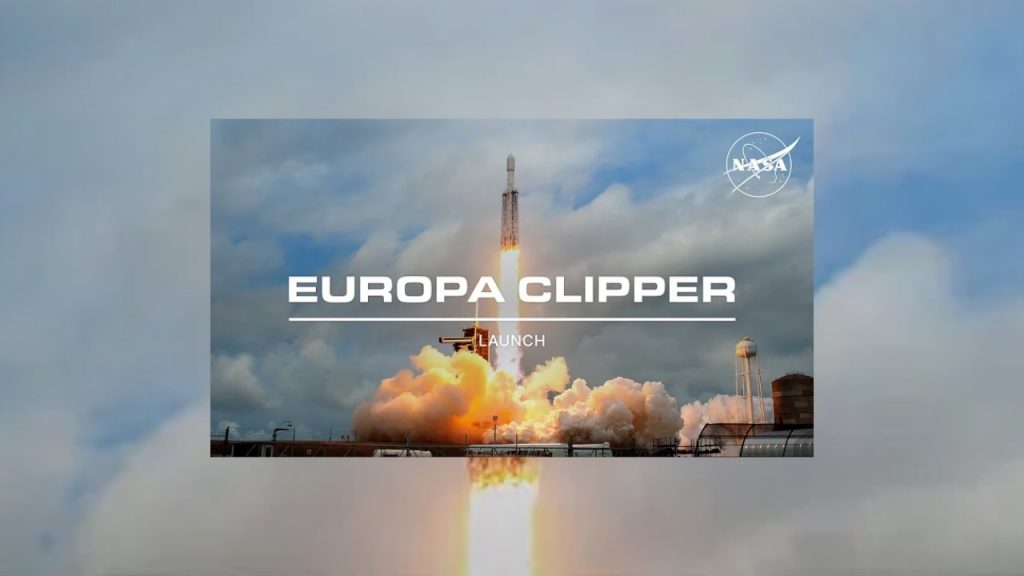 NASA launches the Europa Clipper spacecraft to explore Europa, an ocean moon orbiting Jupiter. Perfect weather for launch.