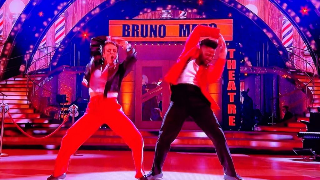 Her celebrity partner JB had been paired with Lauren Oakley for icons week on the BBC show while Amy recovers. JB and Lauren will be performing a couple’s choice dance tonight as they pay tribute to Bruno Mars.