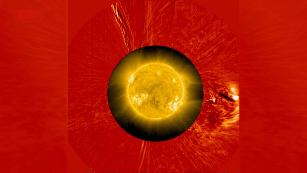 This video was recorded by the spacecraft’s Metis instrument between 12:18 and 20:17 CEST on 12 October 2022. Metis is a coronagraph: it blocks the direct light coming from the Sun’s surface to be able to see the much fainter light scattering from charged gas in its outer atmosphere, the corona.
