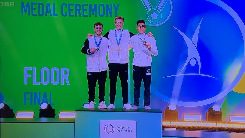Great Britain’s Luke Whitehouse won floor gold for the third-straight year at the European Gymnastics Championships, Leipzig.