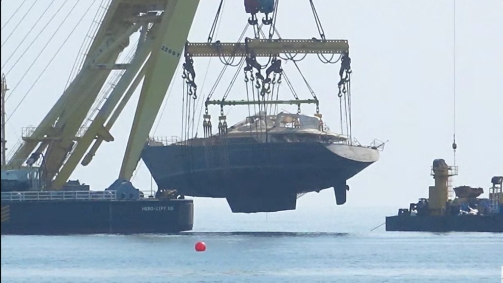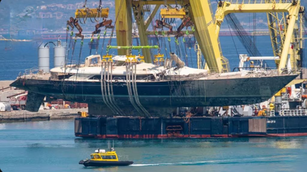 Watch the British-flagged luxury superyacht that sank off Sicily last year moved to the Sicilian port of Termini Imerese. This after being lifted from the water. A U.K. tech magnate Mike Lynch and six others were killed.