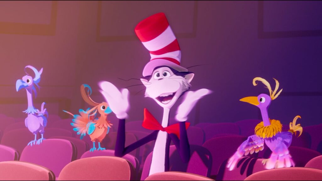 Meet the Cat in the Hat you don’t know. In the wonderfully whimsical tradition of Dr. Seuss, “The Cat in the Hat,” voiced by Bill Hader, comes to the big screen in his animated theatrical feature film debut, an all-new, epic adventure where mischief, magic and mayhem reign supreme.—Warner Bros.