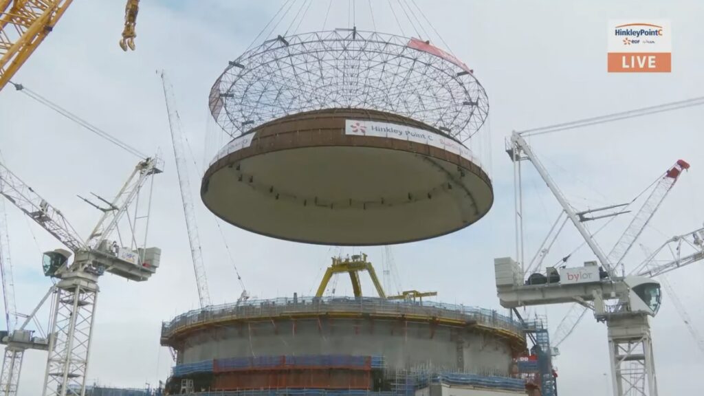 Hinkley Point C, this week broadcast a major moment in its construction – the lifting of a 245-tonne steel dome onto the second reactor building.