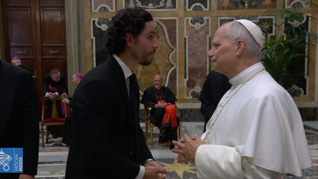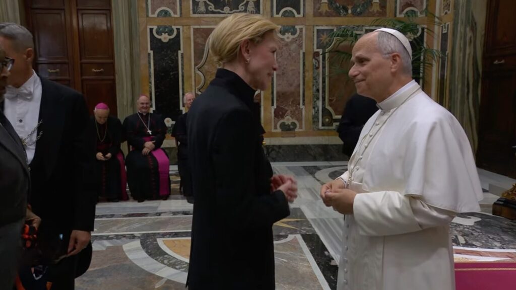 Cate Blanchett, Monica Bellucci, Chris Pine join a special audience with Leo at his Apostolic Palace residence, along with the Oscar winning directors Spike Lee, George Miller and Gus Can Sant.