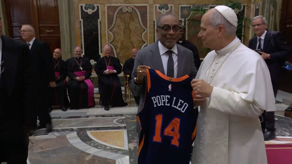 Spike Lee had a gift in hand – a T-Shirt bearing his name.