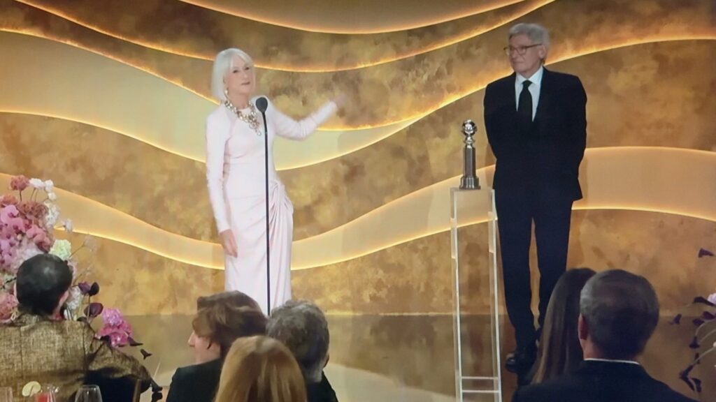 Harrison Ford used one word to described Dame Helen Mirren when he presented her with the Golden Globe Awards’ Cecil B. DeMille Award: “badass”.
