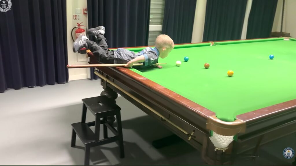 The Manchester toddler successfully executed a pool bank shot at two years and 302 days old on 12 October 2025. Just weeks earlier, at two years and 261 days old, he completed a snooker double pot.