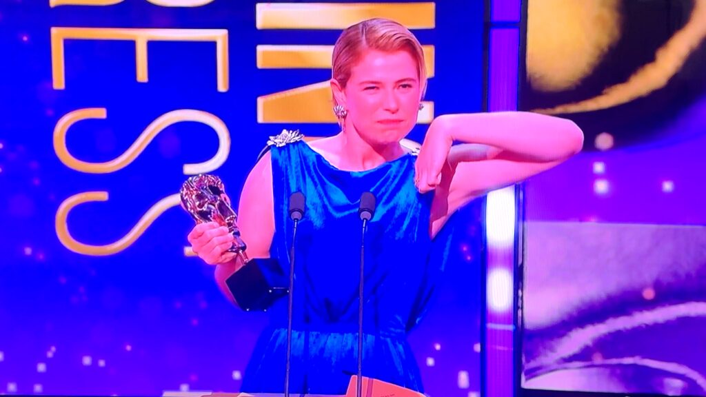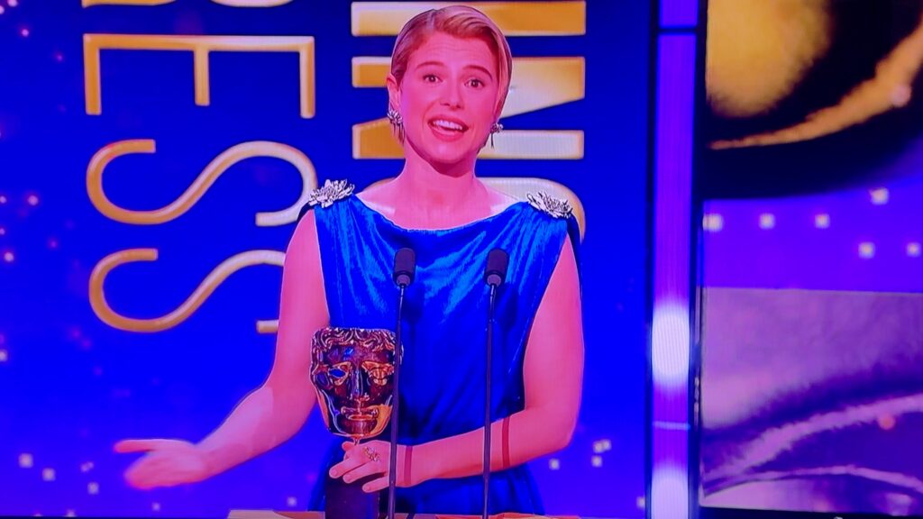 It was for her role in Hamnet.as Agnes Shakespeare. It is the first time an Irish performer has won the best actress prize at Bafta.