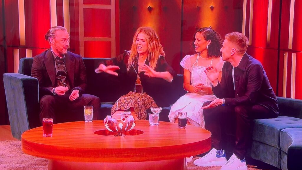 Also on the sofa Gugu Mbatha-Raw, actor, singer and comedian Russell Howard.