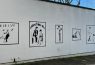 Beauty of wall art. Many walking, shopping as they pass a side street in the heart of Islington town centre. On it is a great picture display